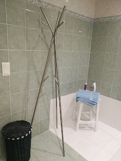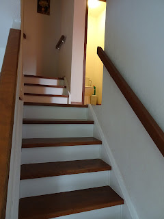 Salle de douche avec douche, lavabo et WC. Wc séparé à l'étage