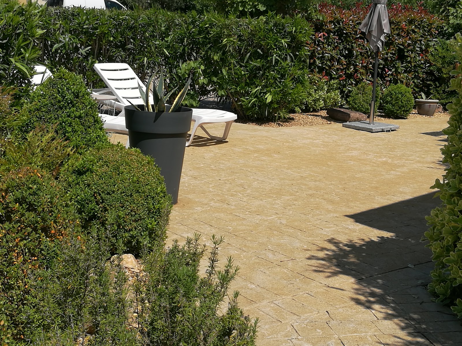 - d'un salon de jardin, de 2 chaises longues et d'un barbecue sur la deuxième terrasse.
