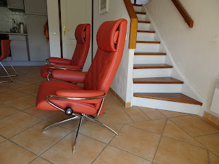 avec divan StessLess, deux fauteuils StessLess et un TV écran plat 42"